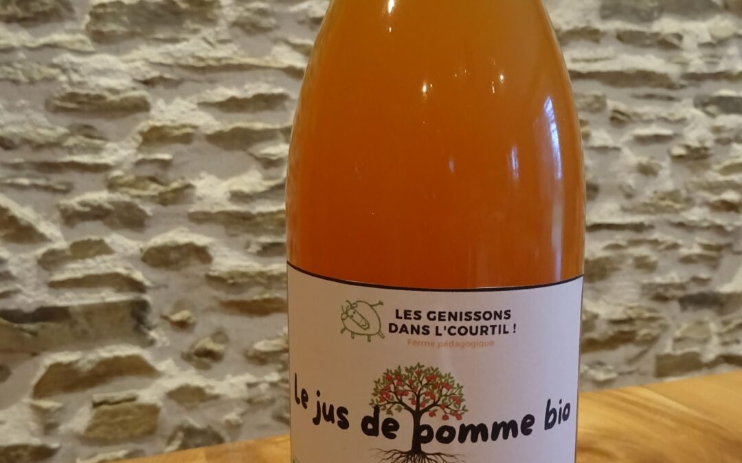 Nouveauté ! Nous mettons en vente notre jus de pomme issu du verger des vaches. Il est naturellement bio et délicieusement sucré. Il séduira toute la famille !